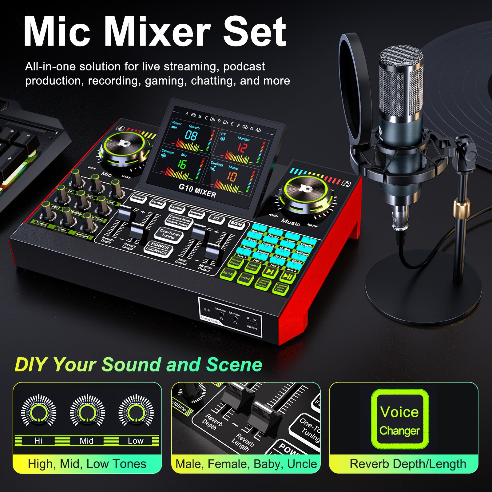 Tenlamp G9-P15 Streaming Podcast Bundle: BM800 Mic & Live Sound Card Audio Mixer with Voice Changer, Denoise for PC/Phone Gaming, Singing, Recording